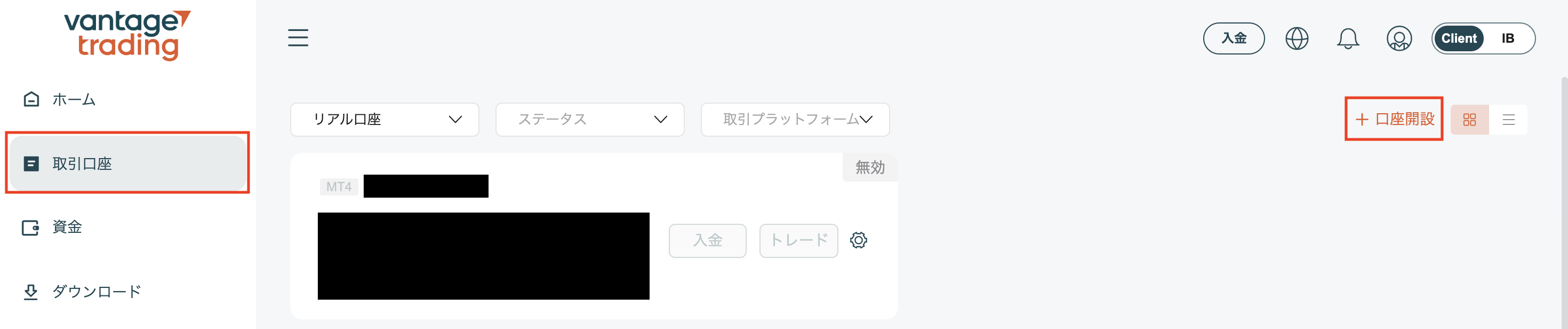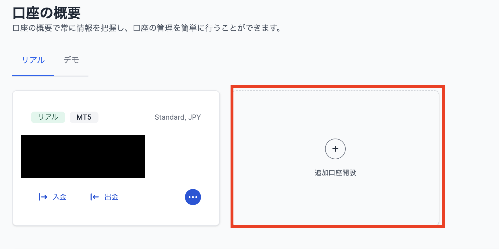 仮の口座が下記で作成されるため、リアル口座の右の「新規口座追加」